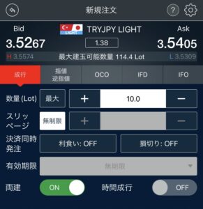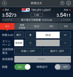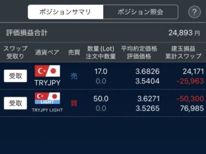 LIGHTモードの買いは、1lot-20lotずつしか買えないので、20lot、10lotというように2回に分けて購入することと、売りポジションは触らないことがポイントです!!(スワップは受け取っても受け取らなくても大丈夫🙆‍♀️)